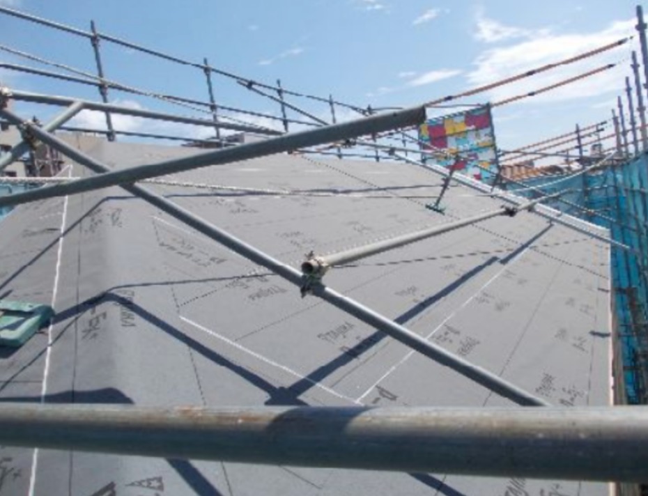 - 屋根、バルコニーのアスファルトルーフィング貼り確認