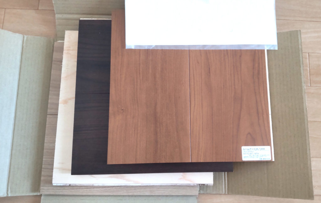 床のオプションカタログを見ていて永大産業の「モクトーン」が新規取扱とあったので、カラー打ち合わせの前に妻が永代産業のショールームに見学に行って、サンプルをいくつか持ち帰りました。