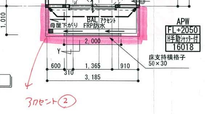 - サッシ(樹脂窓については外側と内側の組み合わせも)、バルコニー笠木
