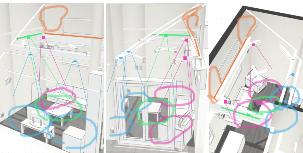 私は、位置の検討をあらかじめ行い打ち合わせに臨みましたが、ざっくり部屋単位などで追加数を指示して打ち合わせで位置を決めることもできると思います。さらに位置についても、配置予定の家具・家電をすべて予定して伝え、それに不都合がないように設計士さんに配置してもらう方法を取れるかもしれません。